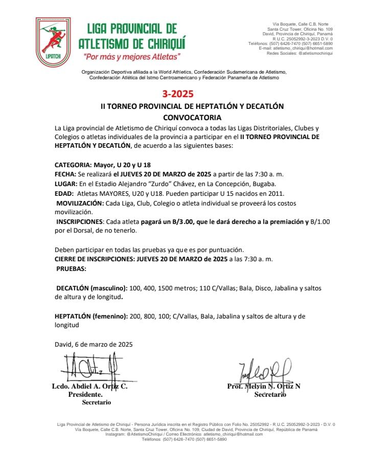 "Estamos emocionados de conocer a los atletas más completos del atletismo chiricano ".